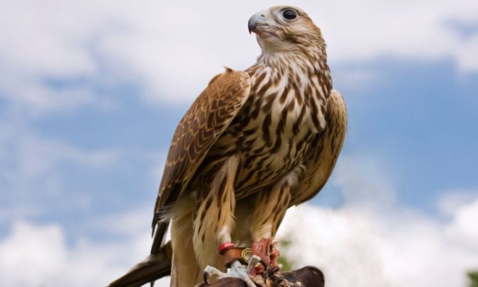 По описанию и фото сокола балобана можно заметить, что внешность самцов и самок друг от друга не отличается. Это достаточно красивая птица интересного окраса. Голова у них обычно светло-коричневого цвета с темными пятнами, темно-коричневой или серой является верхняя часть туловища, при этом встречаются светлые или рыжие полоски. Грудка, наоборот, светленькая, а полоски на ней темные. Низ туловища и лапы практически белые, иногда со светло-желтым отливом. Клюв голубоватого оттенка с черным кончиком, глаза обведены желтыми кругами. Из характеристик и фото сокола балобана видно, какая это красивая птица!