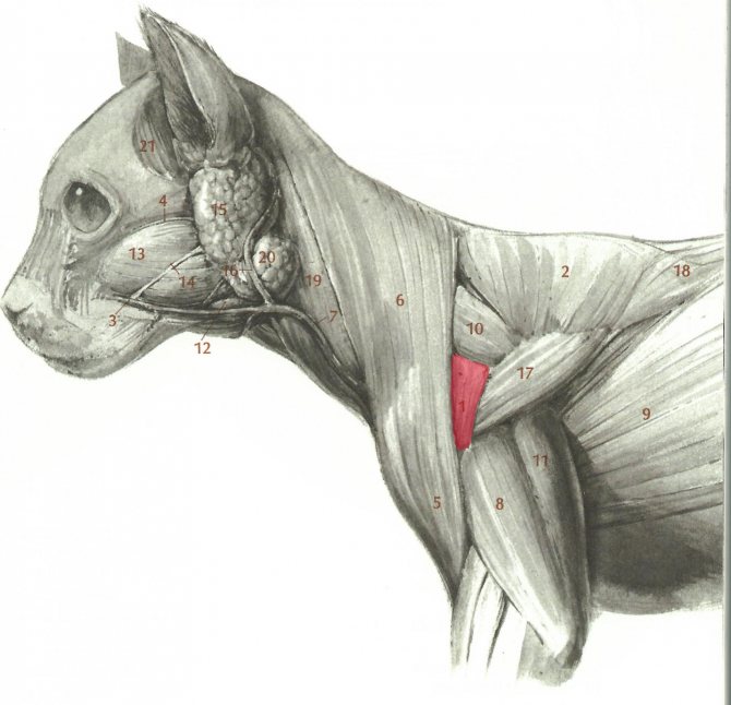 Под кожей имеется слой жировой ткани. А под ней «спрятаны» разные группы мышц — трапециевидные, ромбовидные и другие. Суставов в холке нет — они расположены непосредственно в позвоночнике животного.