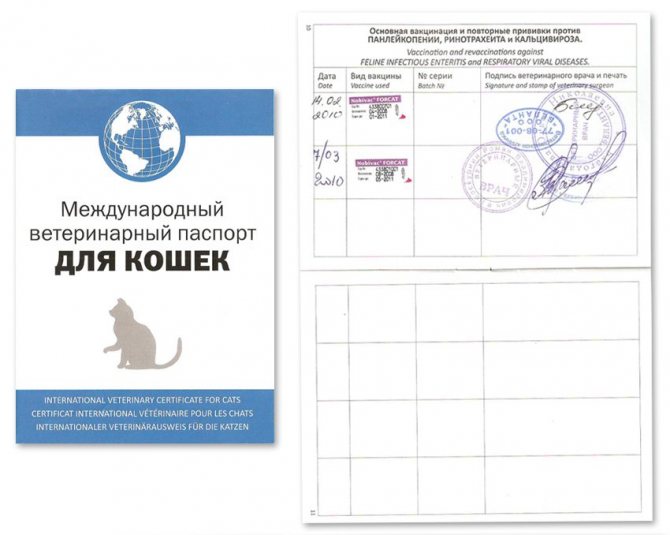 ■ ВЕТЕРИНАРНЫЙ ПАСПОРТ – это тоже очень важный документ. Ветеринарный паспорт выписывается, как правило, в ветеринарной клинике, когда делается первая прививка (в крупных питомниках это делает на дому постоянный ветврач, ведущий медицинское обслуживание всех животных данного питомника). В ветеринарном паспорте, кроме основных данных о котенке (имя, порода, пол, дата рождения, окрас) должны стоять отметки о всех прививках, сделанных данному животному (дата прививки, вакцина), кроме того, в него заносятся данные о дегельминтизации (прогонке глистов). Если Вы задумаете посетить выставку с вашим питомцем, или поехать с ним куда-нибудь, без этого документа у Вас ни то, ни другое не получится.