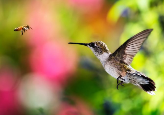 На фото колибри невозможно рассмотреть крылья, при зависании траектория их движения вырисовывает восьмерку.