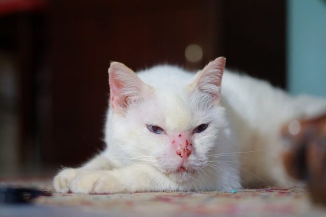 Помимо того, что по телу кошки возникают маленькие узловатые твёрдые уплотнения, они ещё и сопровождаются зудом, доставляя немалый дискомфорт животному.