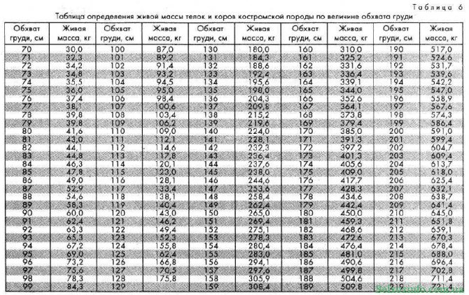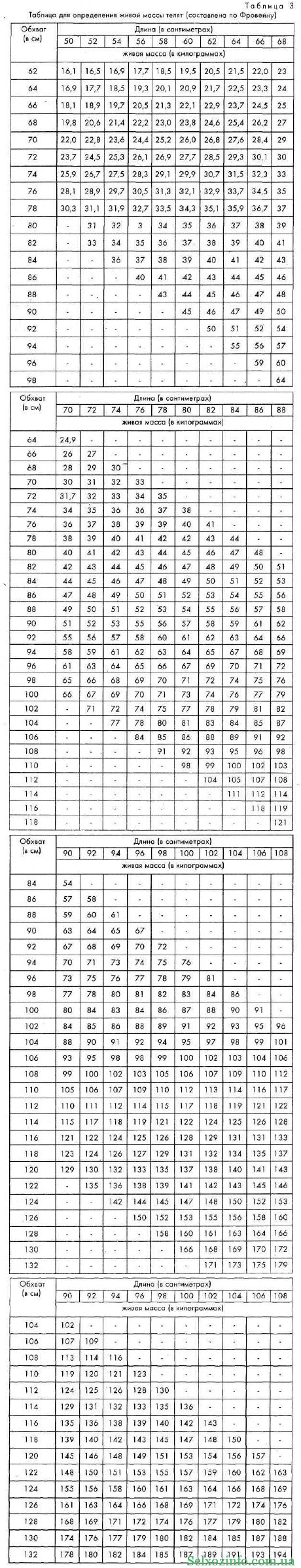 Используя указанные таблицы, можно контролировать вес крупного рогатого скота без проведения процедуры взвешивания.
