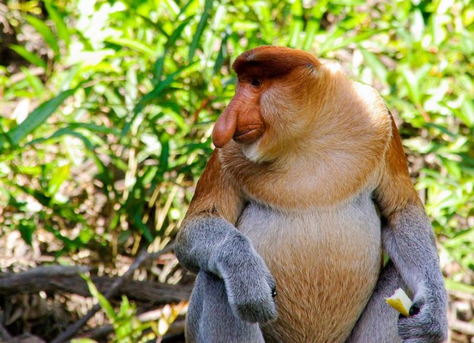 Обыкновенный носач, или, как его еще называют, кахау, — весьма примечательный вид обезьяны. Как правильно можно догадаться, внешность этой обезьяны отличительна большим носом, какого больше не встретить ни у одного примата.