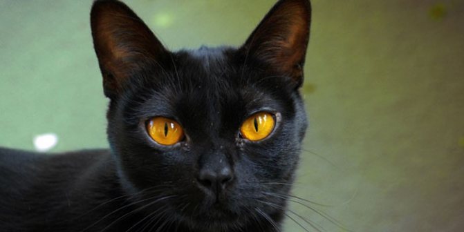 - Глаза округлой формы широко расставлены. Взгляд умный, пытливый. Цвет глаз – желтый, почти оранжевый, что придает большей таинственности на общем черном фоне головы. Но радужка глаз не сразу имеет ярко-желтый цвет. Котята рождаются с голубыми глазами, к шести месяцам они становятся серыми, и только после года глаза приобретают свой основной цвет.