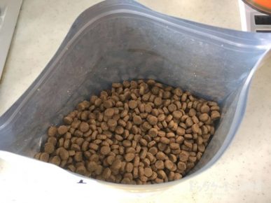 Застёжка на пакете сухого корма поможет продлить срок годности за счёт предотвращения контакта гранул с воздухом