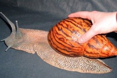 - Самая большая улитка в мире из сухопутных видов— африканская гигантская ахатина весом 900 гр. Животное имело длину 39,3 см, диаметр раковины составил 23,7 см. Среди морских брюхоногих моллюсков гигантскими размерами отличается австралийский трубач. Вес некоторых экземпляров достигает 15-18 кг.