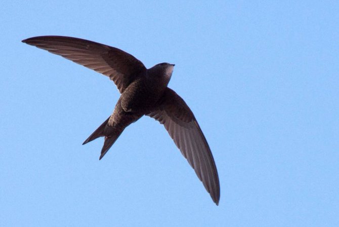 При этом масса тела стрижа равна всего 100-175 г., а в длину достигает 20 см. Размах крыльев при данных показателях доходит до 50 см. Для этой птички характерна манёвренность, поэтому питается она прямо во время полета. Проводит в полете почти целый день, ведь лапы у иглохвостого стрижа имеют особое строение, и совсем не приспособлены к передвижению по поверхности. Однако стрижи порой становятся добычей сапсана, хотя и обладают высокой скоростью и маневренностью в воздухе.