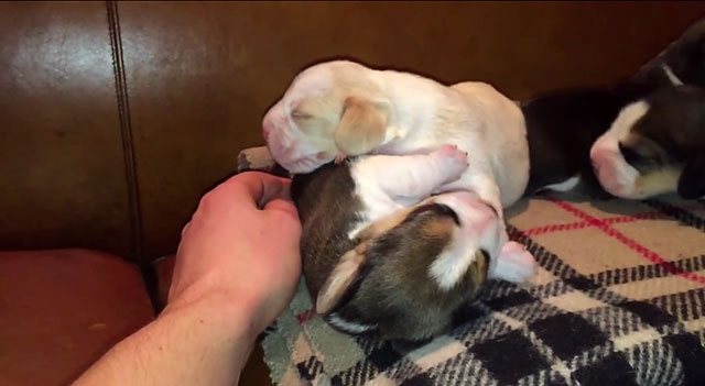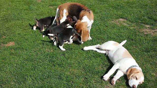 Даже к маленьким детям, способным причинить им боль, бигли относятся благодушно.