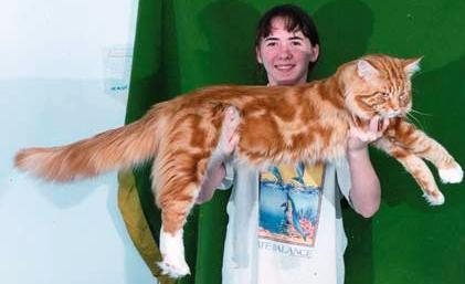 А вот самым длинным от кончика носа до кончика хвоста было решено назвать мейн-куна по кличке Стью из американского штата Невада. Целых 123 см намерила в нём рекордная комиссия. Стьюи удалось опередить предыдущего рекордсмена примерно на 1,5 см.