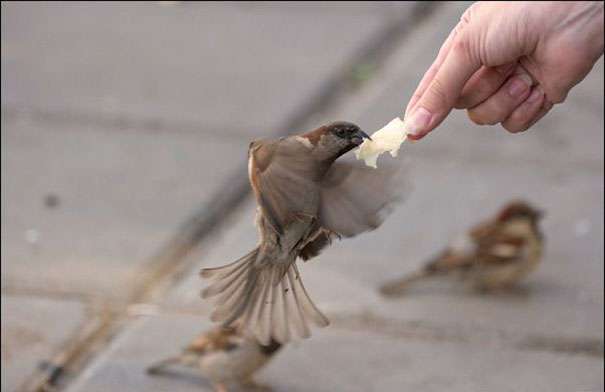 Видео о том, как кормить воробьев