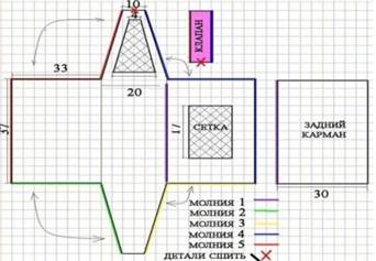 - Молния, ременная лента. Если захотите кроме ручки еще и ремень через плечо, то понадобятся карабины, кольца и ограничители.