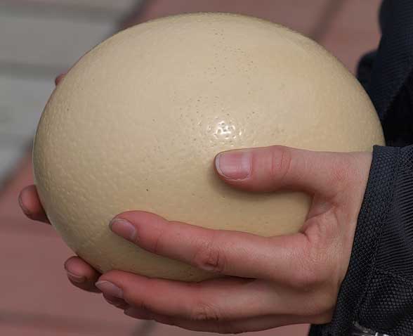 Снесенные страусами следует обработать, протерев сухой тряпкой, сразу же после выемки из гнезда. Затем их укладывают в чистый ящик тупым концом вверх. Хотя тяжело определить, где у них тупой конец, поэтому часто их выкладывают горизонтально.